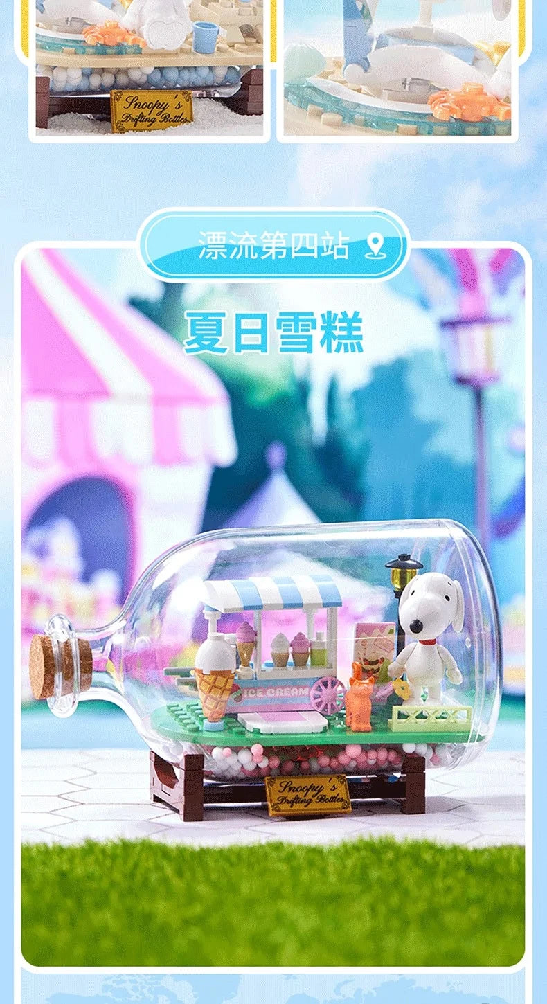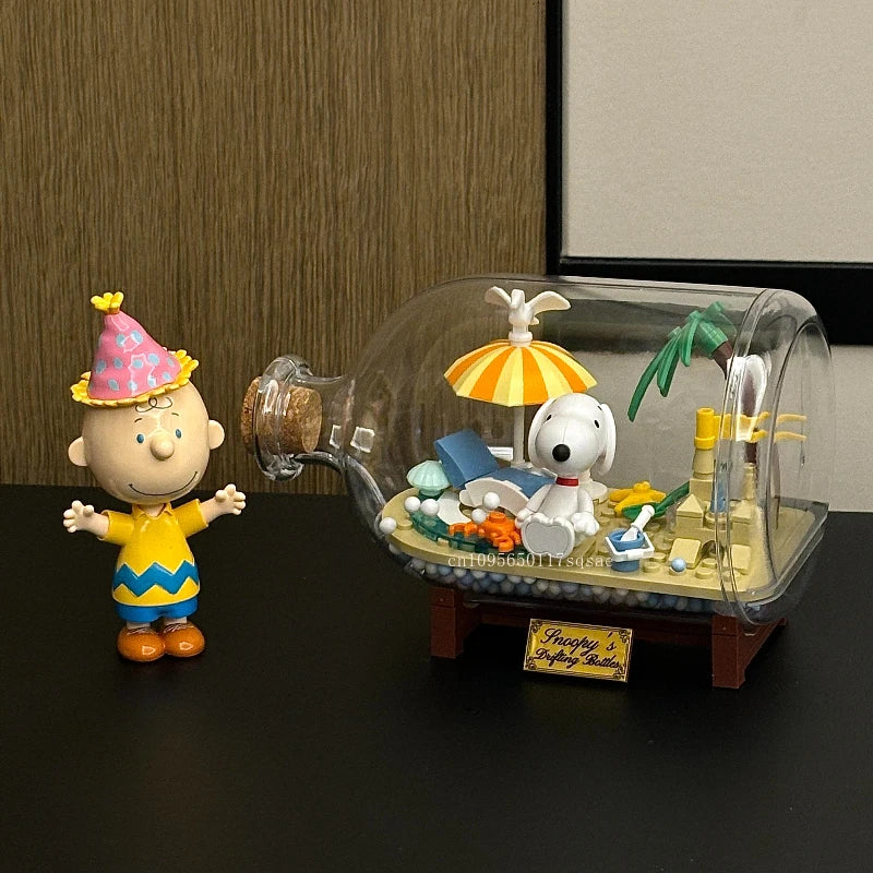Miniso Snoopy Building Blocks Drifting Bottle Series Desktop Ornaments Collection Model Splicing Children's Toys Birthday Gifts