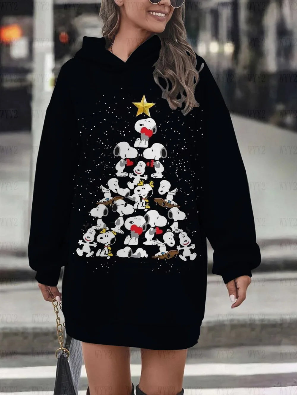 - 🔹 Bold holiday print featuring Snoopy for instant seasonal style.