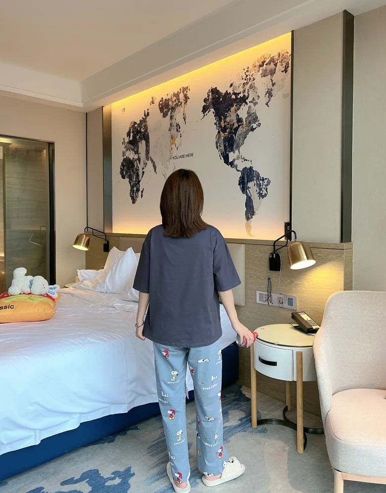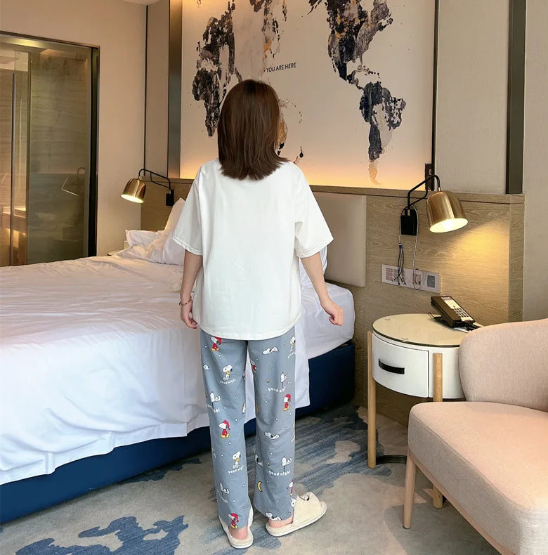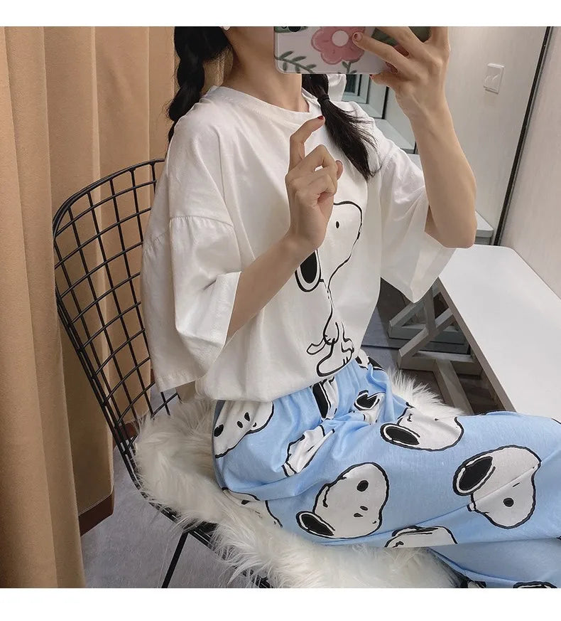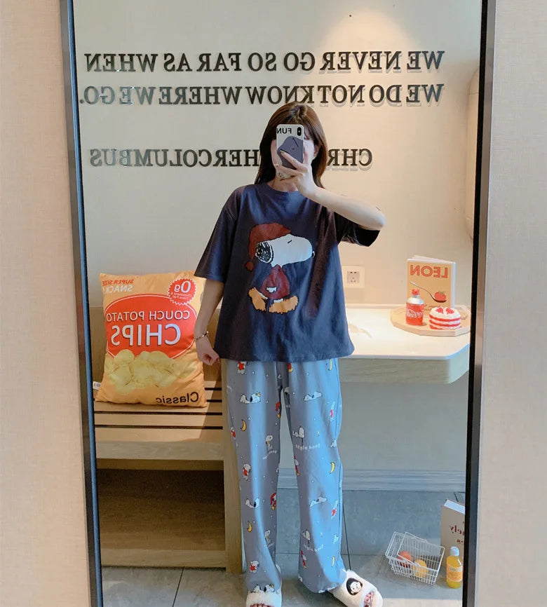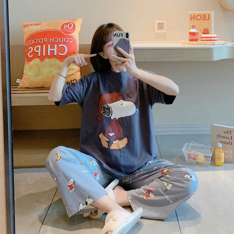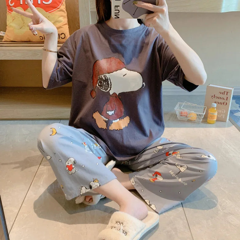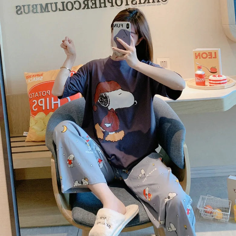 Pajama Set Short Sleeve Pants Loose Fit Snoopy Shirt