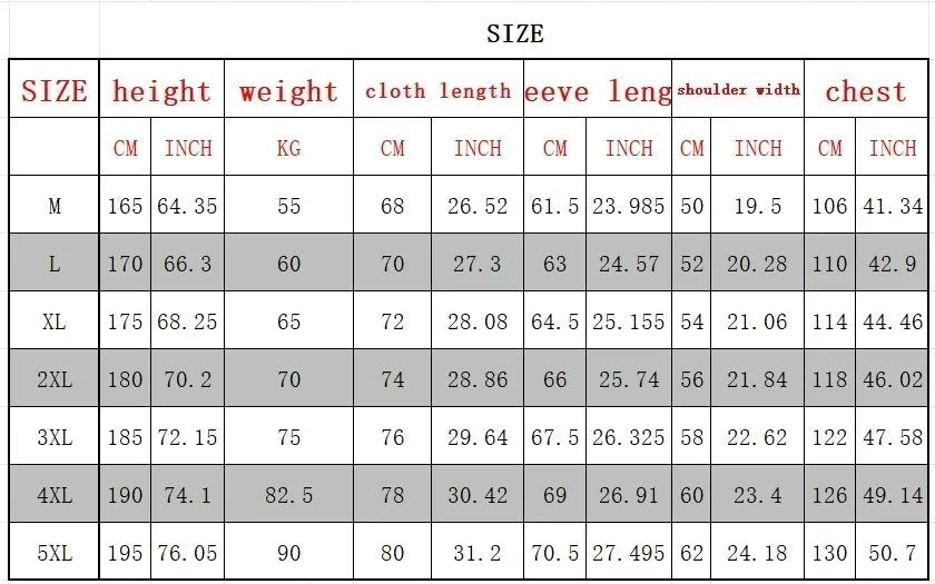 Size | Chest (cm) | Chest (in) | Length (cm) | Length (in) |